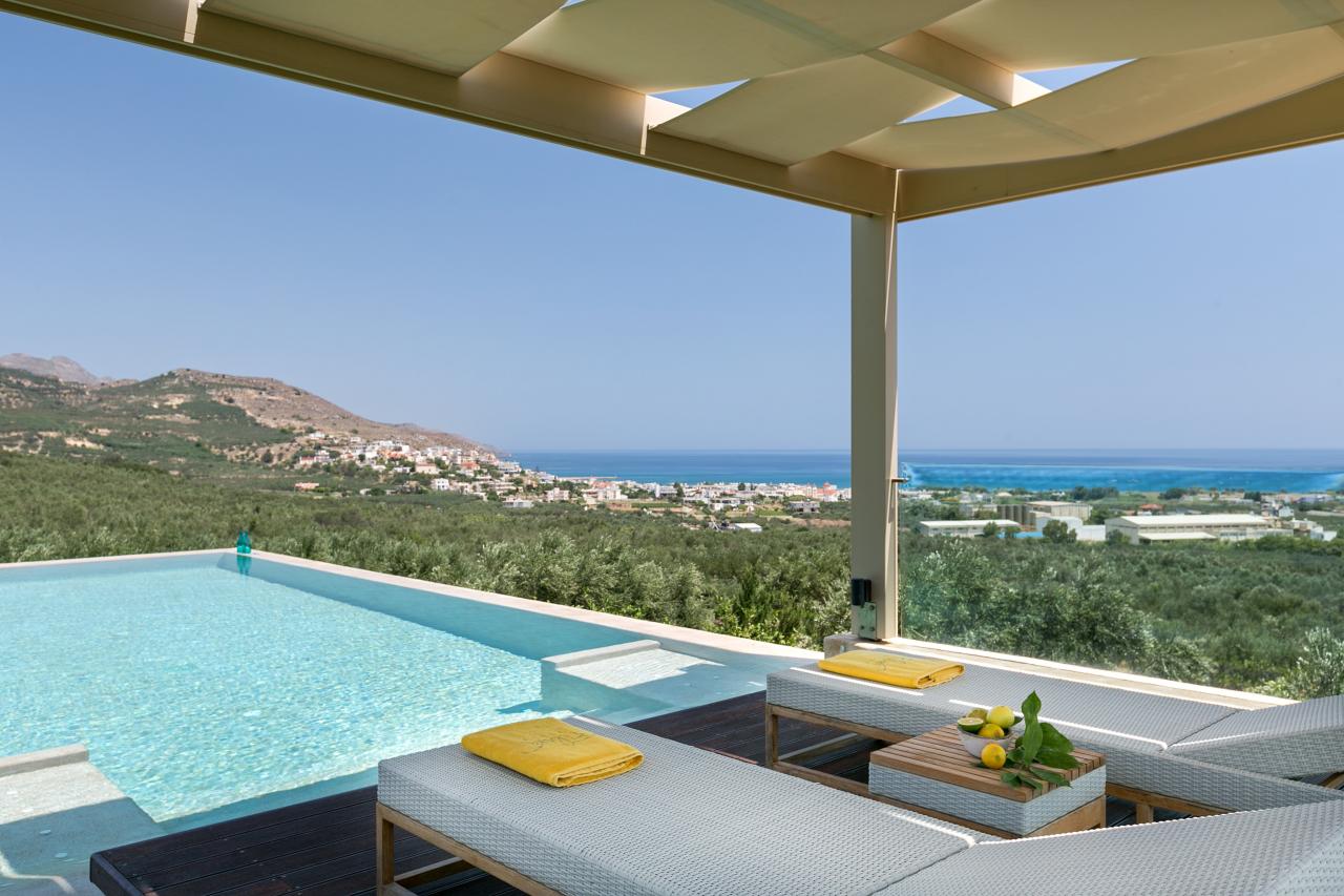 Incomparable Countryside Villa Filira, Contemporary Earthy Design & Panoramic Vista to Chania in Crete