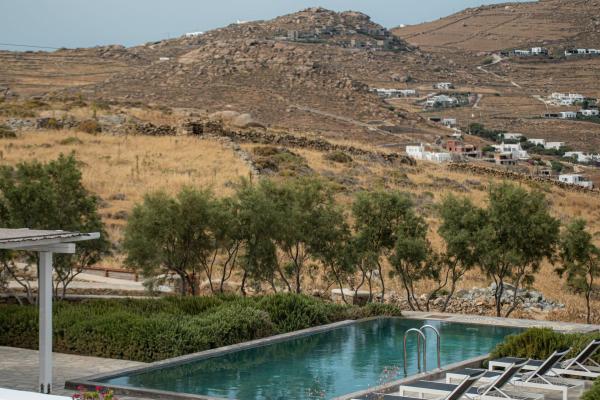 2Door Villas (Villa Alaya, Vllla Maha and Vlla Zendo) are located in the upcoming area of Kalafatis, offering panoramic sea views and each can accommodate up to 6 guests. Each consisting of 3 bedrooms and 2 bathrooms, guests will also find a comfortable living room with a fully equipped kitchen. A spacious furnished patio with a sitting place including a pergola for outdoor dining and a sizeable shared pool with panoramic views of Kalafatis & Ayia Anna are at your disposal. The enormous outdoor areas are ideal for those who seek that extra bit of privacy. The space, The villa with its traditional Cycladic design and architectural aesthetic of white elements, traditional stone and wood beamed ceilings, is perfectly harmonized with the charming natural surrounding and creates an ideal atmosphere for relaxation, tranquility and wellness. This 180 m2 villa, spread across two levels, can host up to 6 guests. The indoor space is 180 square meters and features a living/dining room, three air-conditioned bedrooms each with its own wardrobe and two bathrooms. Built according to the local architecture, the villa is decorated in white lines and is divided into 2 levels. Entering the villa, guests are welcomed in a spacious living room area with comfortable sofas and a fully equipped open plan kitchen which includes the dining table. Guests can enjoy a meal or drink while enjoying the most magnificent view of the Aegean Sea at the breathtaking sunlight. The ground floor living area is spacious and consists of large sofas, WIFI, a Smart satellite TV with Netflix, YouTube and international channels. On the same floor there is a fully equipped kitchen with a ceramic hob oven, large fridge and microwave, as well as everything one will need. The lower floor area consists of 3 bedrooms and 2 bathrooms with a built-in shower. The outdoor area is shared with another Villa and features a spacious garden with stunning views of the surrounding hills and sea. It consists of a pool with a BBQ and a dining area. The pool space also features sunbeds, pool poufs and a hammock. It is fully furbished and equipped and has its own private parking. The area is suitable for breakfast and brunch in the shaded dining area (one for each house) and relaxing moments on the sun loungers surrounding the pool. This Villa targets to guests who wish to vacate in style and comfort, as well as to those who will appreciate its proximity to town, the islands staggering beaches and its famous night life. Guest's access, The Team of 2Doors Mykonos Villas welcome you on site and provide help with your requests. Mykonos Airport and the cosmopolitan main town are within 11 km (about 7 miles) from the property. Free, private parking is available on site. We also provide transfer to and from the airport and port. For 5 night-stay or more transportation from the port or airport is free! Interaction with guestsWe are available 24/7 for our guests for anything you may need. We have extra Concierge Services & we can help you in organizing transportation, as well as any other activity you may wish. Our goal is to make your experience unique. And always keep in mind, We are just a phone call away! Other things to noteThe Villa managers, Neoklis, Ilias and Athina, are available 24/7, for any assistance required. We are always nearby, in order to make sure that our guests enjoy an unforgettable holiday experience in Mykonos! We value our guests needs. Our mission is to exceed their expectations! Villa Alaya, this luxurious 180 m2 Villa, located the upcoming area of Kalafatis, can comfortably accommodate up to 6 guests. Designed with traditional Cycladic decorations, its characterized by its white elements, traditional stones, and wood beamed ceilings. It is perfectly harmonized with the charming natural surroundings and it creates an ideal atmosphere for relaxation, serenity & wellness. Villa Alaya is divided into two levels, consisting of 3 bedrooms and 2 bathrooms - each with a built-in shower - as well as two extra comfortable built-in sitting areas - one indoor and one outdoor - for the most relaxing moments during vacations. Alaya Villa is situated right above Kalafatis beach with breathtaking panoramic sea views. Overlooking the Aegean Sea, guests can enjoy an unforgettable sunrise having the island of Ikaria in the background. The unique elevated position of the complex surrounded by an enchanted garden and relaxing terraces offer distinct views of the whole landscape. In only a 5-minute drive lies the beach of Kalo Livadi with many bars and restaurants (the famous Solymar bar is located here). Ano Mera, the traditional village of Mykonos can also be found 3 km from the Villa.