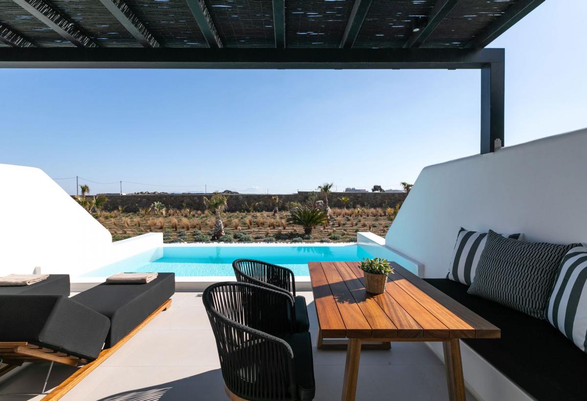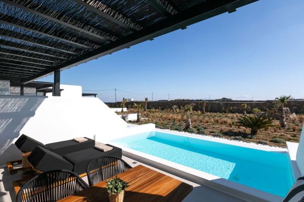 Places near Agrari Black Villas: Agrari Black Villas are located in Agrari beach, in south Mykonos. Agrari Beach is located next to Elia Beach. It is about a 5-minute walk over a rocky outcrop. The beach is well-organised with sun beds & shades, a lifeguard and a popular beach restaurant.