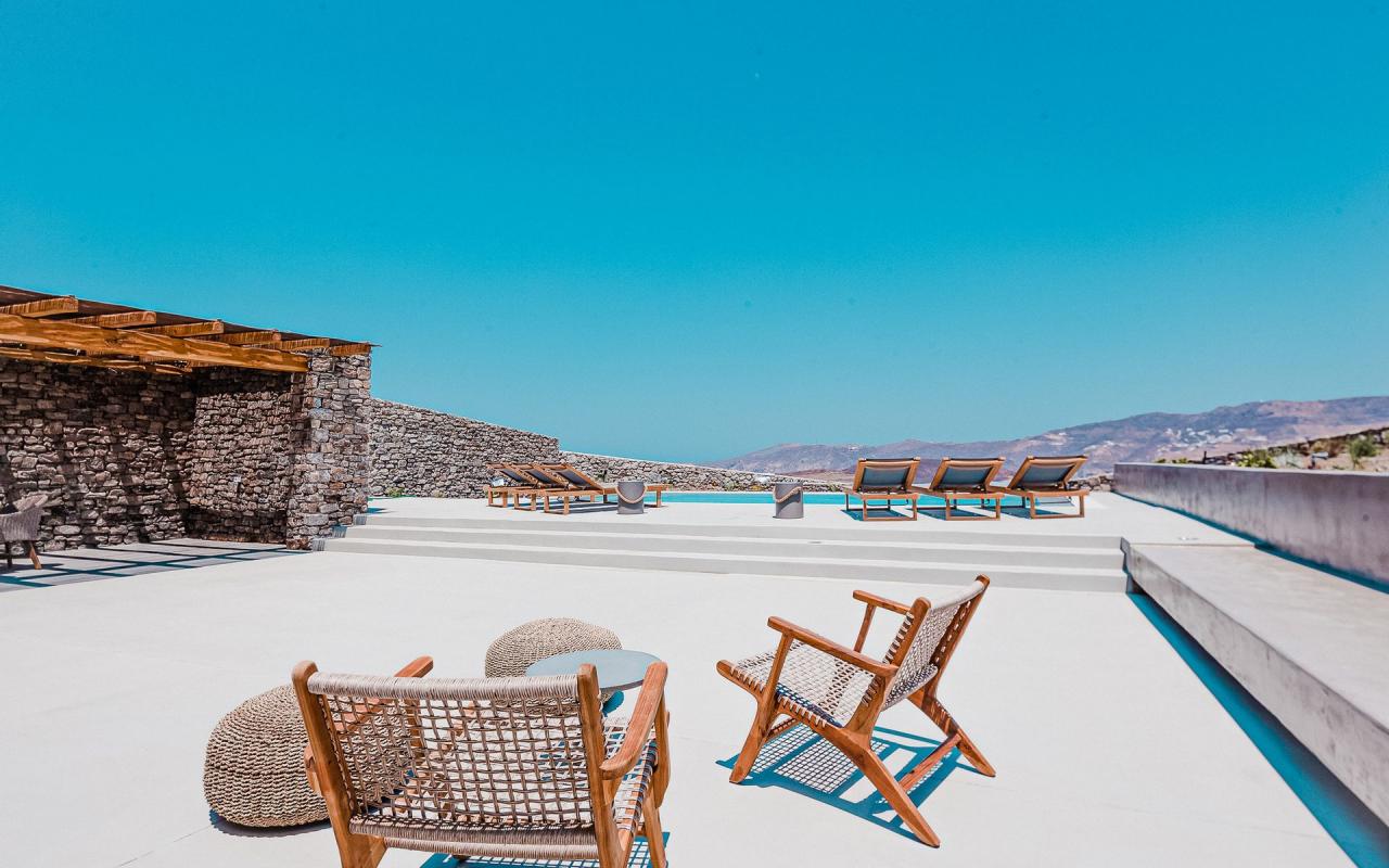 A luxury home away from home, the Astrea private pool villa in Mykonos, is fitted with a sleek and stylish.