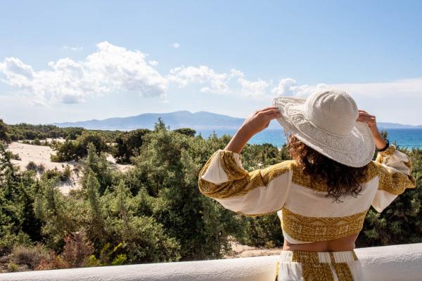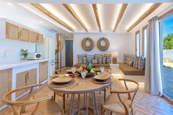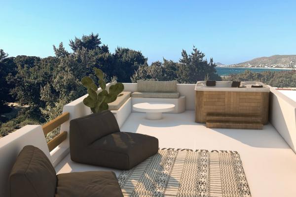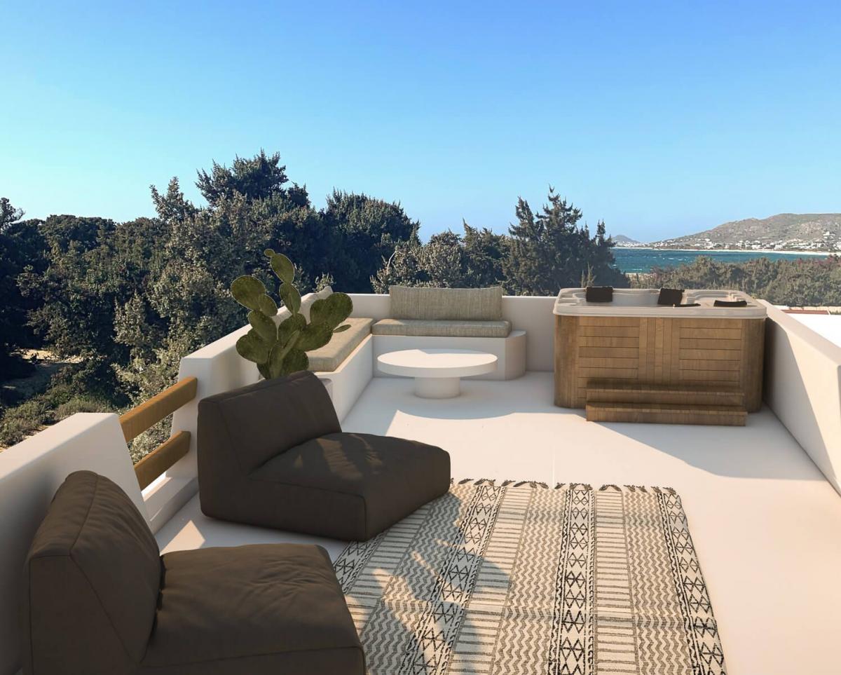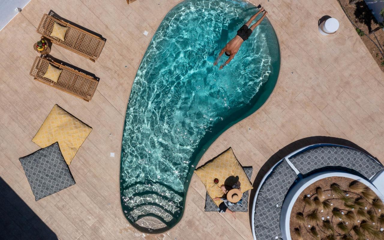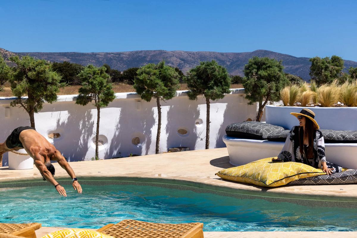 The combination of green and blue provides the ultimate backdrop for relaxation at exclusive villa with private pool in Naxos
