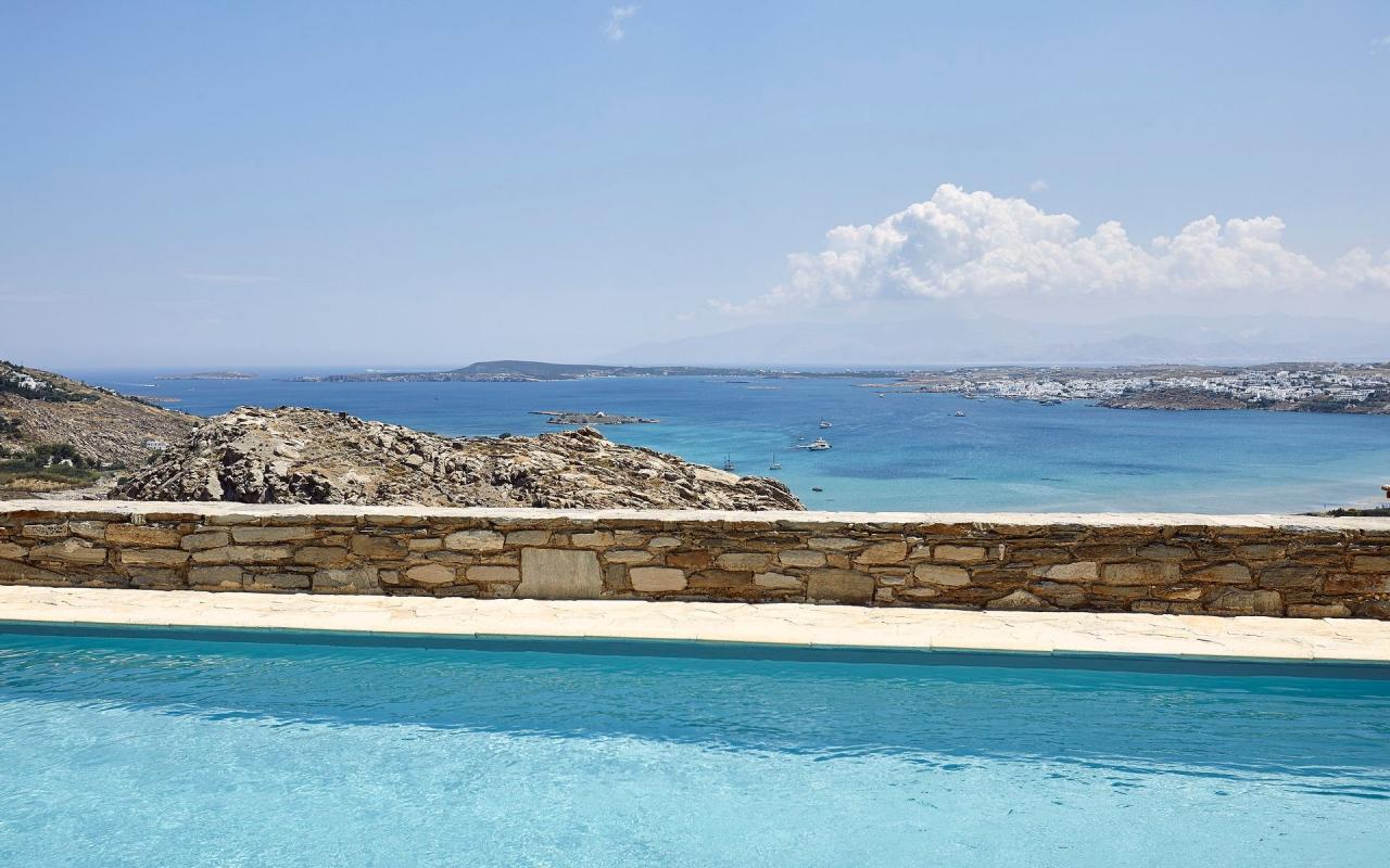 Indigo villa with private pool overlooking the breathtaking scenery and offering sweeping views of the Aegean Sea in Paros