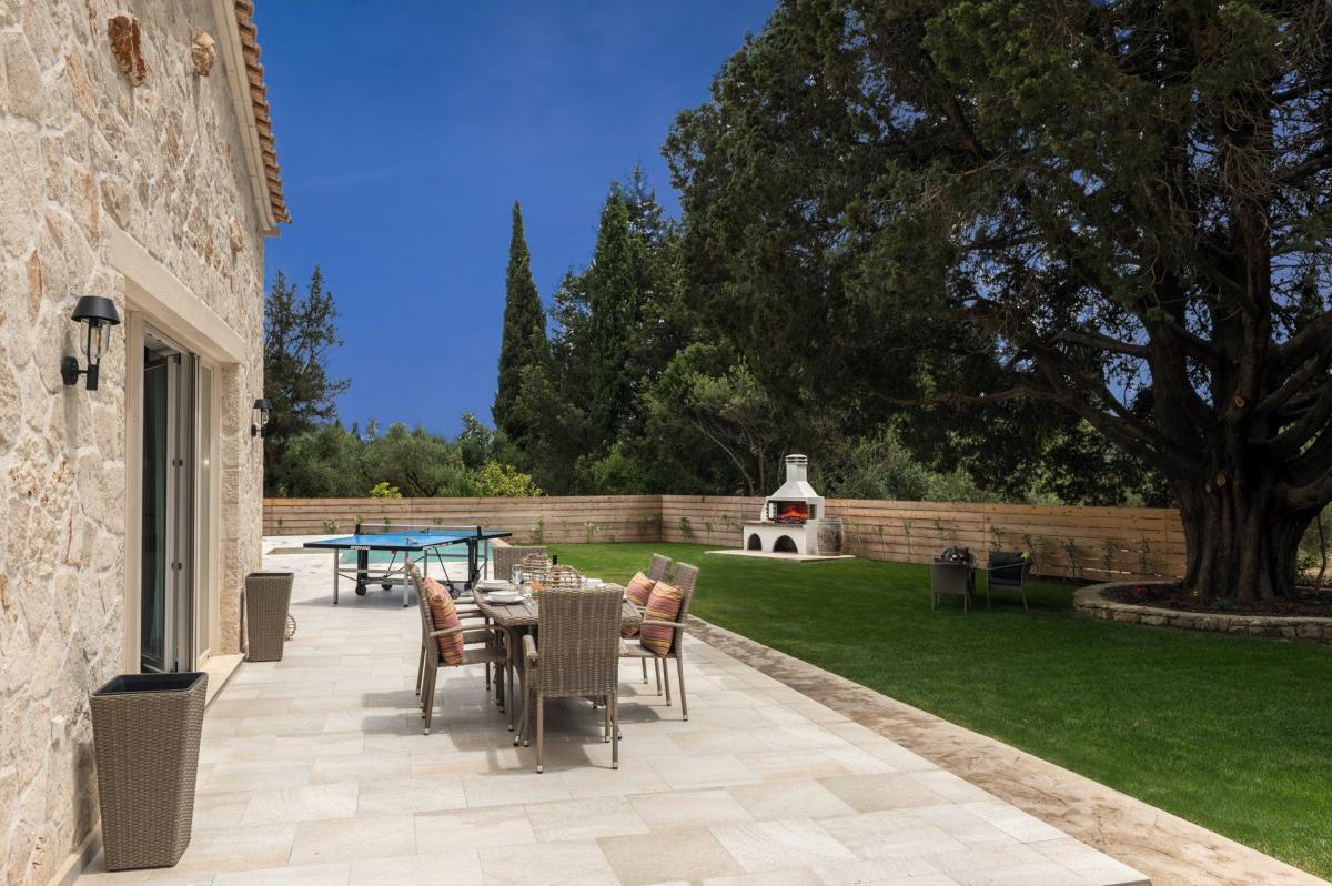 Exceptional Comfort for Luxurious Holidays... In private path retreats combining tranquility with luxury, Astarte villas complex offer to guests a unique experience! Distinctly styled villas located in several areas are each equipped with modern conveniences and luxurious amenities. These private & luxury homes exude a sense of serenity, each surrounded by pristine gardens and positioned to offer total seclusion! All villas afford guests total privacy, with their own entrance & private pool, spacious outdoor living & dining areas combined with natural surroundings, while well-appointed interiors & chic decor make a luxurious home away from home.. Astarte villas welcome guests to an unforgettable experience & on a trip to remember! The jewel in the crown! Spacious, stylish and thoughtfully designed, Villa Laalu is the jewel in the crown, with spacious interiors and exteriors! Carefully selected artworks are on display throughout this exquisite villa, together with high-end artifacts, designed with the taste of the owners!Round-the-clock, in-villa dining can be enjoyed in the living room with large verandas, or in air-conditioned or al fresco dining areas. Relax in style in this private villas perched atop the emerald green surroundings, or strung along the turquoise pool. Villa Laalu exudes a sense of serenity and features rich and tasteful furnishings that were carefully curated to complement the surrounding natural beauty. Designed elements are seamlessly mixed in to create a beautiful and chic atmosphere. The luxury of space makes this villa the perfect heaven for couples and families alike. Catering to your every desire, our Astarte Villa's Host will ensure that every experience at Villa Laalu is personal. Laalu Villa measuring 120s.q.m is set in beautiful grounds and offers patio, completed with an infinity private pool, garden and built BBQ. Laalu Villa is suitable for 2 or up to 6 persons & offers a spacious living-room, dining room & fully equipped kitchen, breakfast bar and a fireplace. It has independent heating, A/C, complimentary Wi- Fi, storage-room with a washing machine, as well as a private entrance! Bedrooms: Master Bedroom 22sqm with Double bed, A/C unit, En-suite bathroom with shower, closet, linen & towels, pool towels & pool view! Senior Bedroom 22sqm with 2 Single beds, closet, A/C unit, linen & towels, pool towels & En Suite bathroom with shower! Junior Bedroom 18sqm with 2 Single beds, A/C unit, bathroom with bath, closet, linen & towels, pool towels! External Spaces: The main entrance of the Villa has a remotely controlled gate, offering privacy & secure stay! Olive trees & paths onsite are ideally for walking through the day or relaxing in the garden under one of the oldest Cypressus in Greece! The private swimming pool in a rectangle shape with sun beds & umbrellas, BBQ & garden furniture's offers unbeatable seclusion! Billiard and Table Tennis are available! Featuring exquisite views Villa Laalu is secluded and is perched on stilts among the treetops. This Mediterranean luxurious stone house provides guests with unforgettable memories. At this elevation, privacy is assured as the beautiful, panoramic views unfold like a living canvas of sparkling sky colors! Externally the villa has a private parking for the guest! The entire property is available to visitors! Location: Just at a distance of 3km away from Zakynthos town, and 7km away from the airport, Village Vanato is set amongst lush vegetation with olive trees & vineyards. It's very easy to explore the northern part of the island from here, with the famous Navagio Beach (shipwreck beach) and the lovely and protected beaches of the south east of the island towards Gerakas' where the caretta - caretta turtles lay their eggs. Offering the tranquility of a traditional village, Vanato is no more than a short drive away from Bochali hill well known for the breathless view of the town. The lively resort of Tsilivi, with a wide choice tavernas and cafe bars, is just 3 kilometers away with its long sandy beach awarded with the "Blue Flag" and variety of water sports.